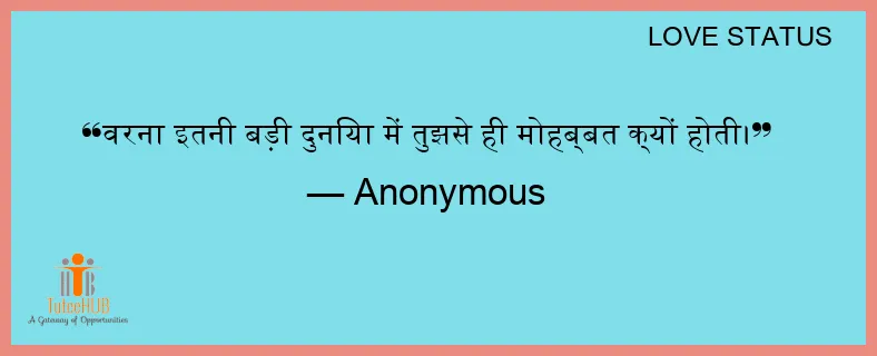 वरना इतनी बड़ी दुनिया में तुझसे ही मोहब्बत क्यों होती।