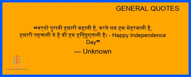 वर्षों पुरानी हमारी कहानी है, करते सब हम मेहरबानी है, हमारी पहचानी ये है की हम हिन्दुस्तानी है। - Happy Independence Day