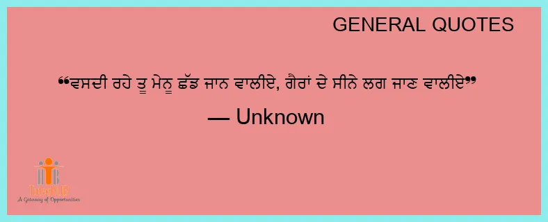 ਵਸਦੀ ਰਹੇ ਤੂ ਮੇਨੂ ਛੱਡ ਜਾਨ ਵਾਲੀਏ, ਗੈਰਾਂ ਦੇ ਸੀਨੇ ਲਗ ਜਾਣ ਵਾਲੀਏ
