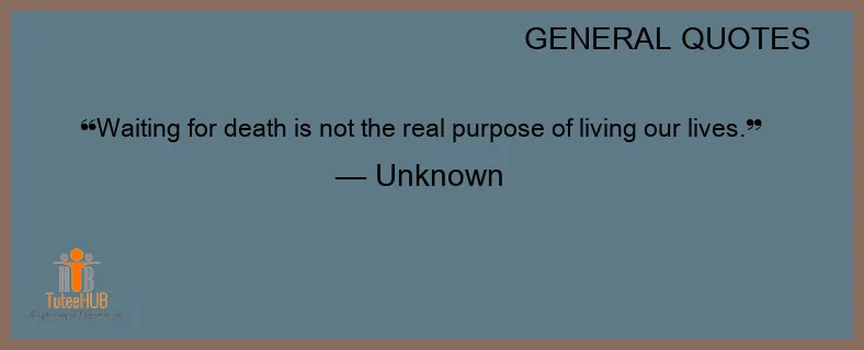 WAITING for death is not the real PURPOSE of LIVING our LIVES.