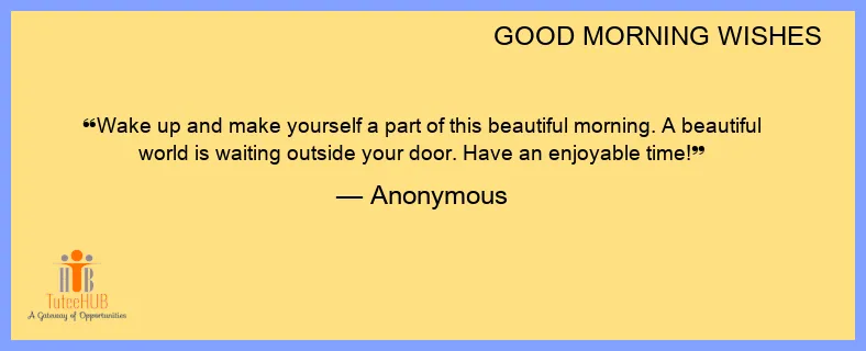 Wake up and make yourself a part of this beautiful morning. A beautiful world is waiting outside your door. Have an enjoyable time!