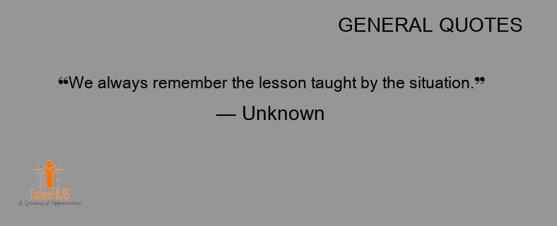 We ALWAYS REMEMBER the LESSON TAUGHT by the SITUATION.