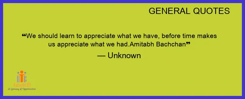 We should LEARN to appreciate what we have, before TIME MAKES us appreciate what we had.Amitabh Bachchan