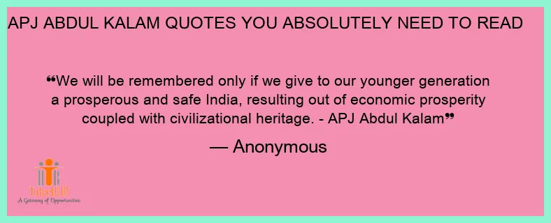 We will be remembered only if we give to our younger generation a prosperous and safe India, resulting out of economic prosperity coupled with civilizational heritage. - APJ Abdul Kalam