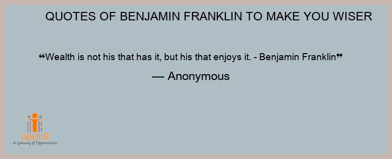 Wealth is not his that has it, but his that enjoys it. - Benjamin Franklin