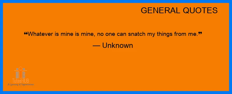 WHATEVER is MINE is mine, no one can snatch my THINGS from me.