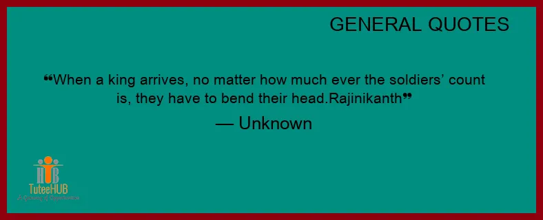 When a KING arrives, no matter how much ever the soldiers’ COUNT is, they have to BEND their head.Rajinikanth