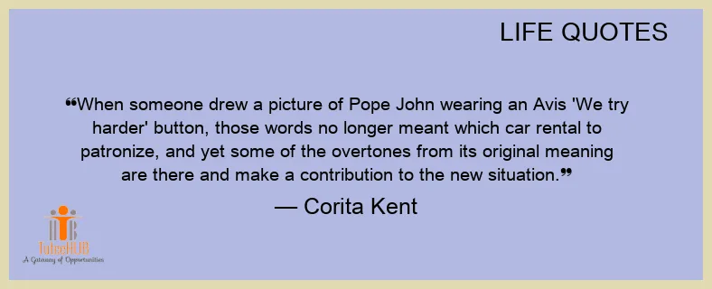 When someone drew a picture of Pope JOHN wearing an Avis 'We try harder' button, those words no longer MEANT which CAR rental to patronize, and yet some of the overtones from its original meaning are there and make a CONTRIBUTION to the new situation.