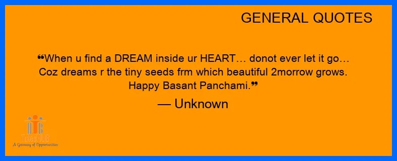 When u FIND a DREAM inside UR HEART… donot ever let it go… Coz dreams r the tiny seeds frm which beautiful 2morrow GROWS. HAPPY Basant Panchami.
