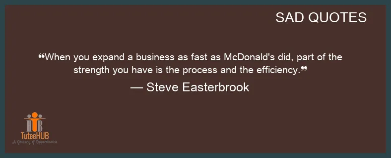 When you expand a BUSINESS as fast as McDonald's did, PART of the strength you have is the process and the EFFICIENCY.