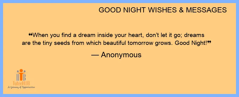 When you find a dream inside your heart, don’t let it go; dreams are the tiny seeds from which beautiful tomorrow grows. Good Night!