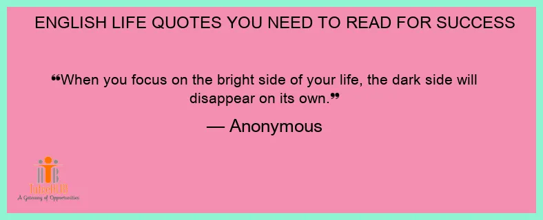 When you focus on the bright side of your life, the dark side will disappear on its own.