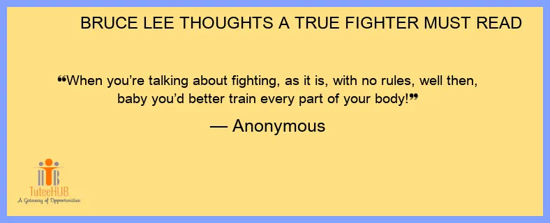 When you’re talking about fighting, as it is, with no rules, well then, baby you’d better train every part of your body!