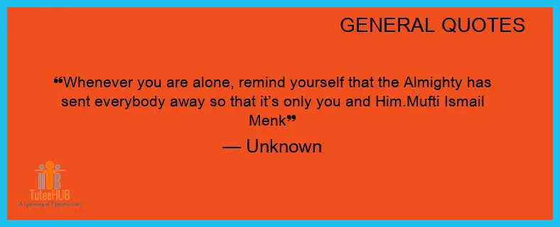 Whenever you are ALONE, remind yourself that the Almighty has sent everybody away so that it’s only you and Him.Mufti Ismail Menk
