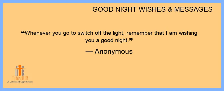 Whenever you go to switch off the light, remember that I am wishing you a good night.