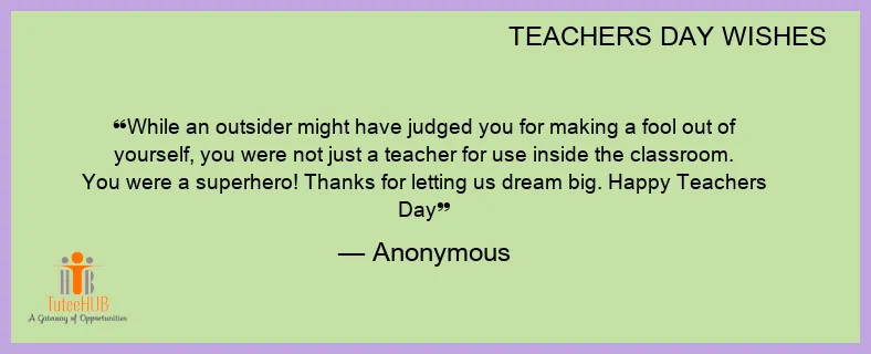While an outsider might have judged you for making a fool out of yourself, you were not just a teacher for use inside the classroom. You were a superhero! Thanks for letting us dream big. Happy Teachers Day