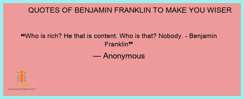 Who is rich? He that is content. Who is that? Nobody. - Benjamin Franklin