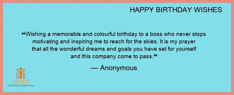 Wishing a memorable and colourful birthday to a boss who never stops motivating and inspiring me to reach for the skies. It is my prayer that all the wonderful dreams and goals you have set for yourself and this company come to pass.