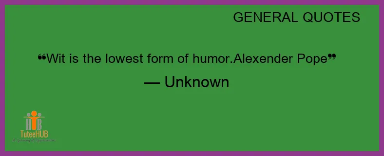 WIT is the LOWEST FORM of humor.Alexender POPE
