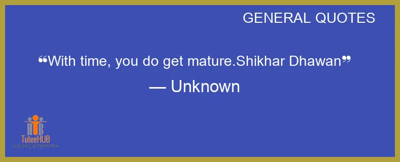 With TIME, you do GET mature.Shikhar Dhawan