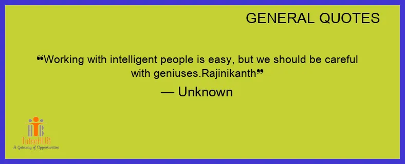 WORKING with INTELLIGENT PEOPLE is EASY, but we should be CAREFUL with geniuses.Rajinikanth