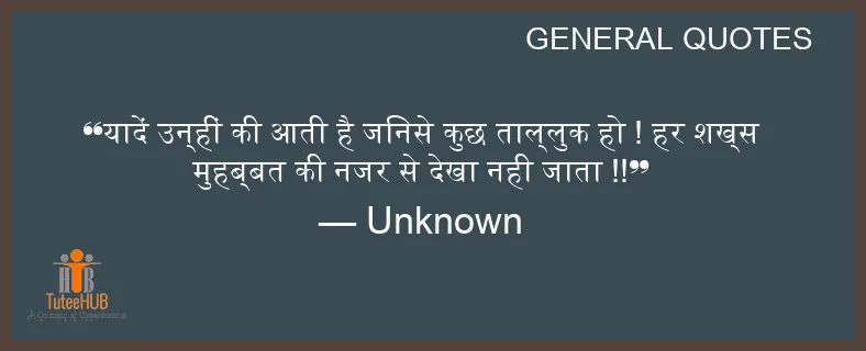 यादें उन्हीं की आती है जिनसे कुछ ताल्लुक हो ! हर शख्स मुहब्बत की नजर से देखा नही जाता !!