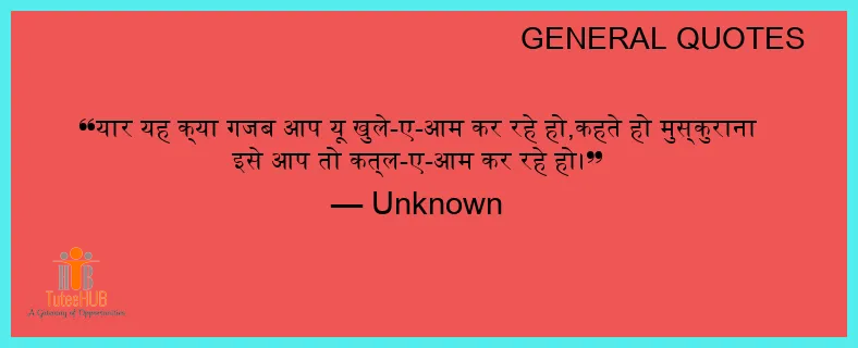 यार यह क्या गजब आप यू खुले-ए-आम कर रहे हो,कहते हो मुस्कुराना इसे आप तो कत्ल-ए-आम कर रहे हो।
