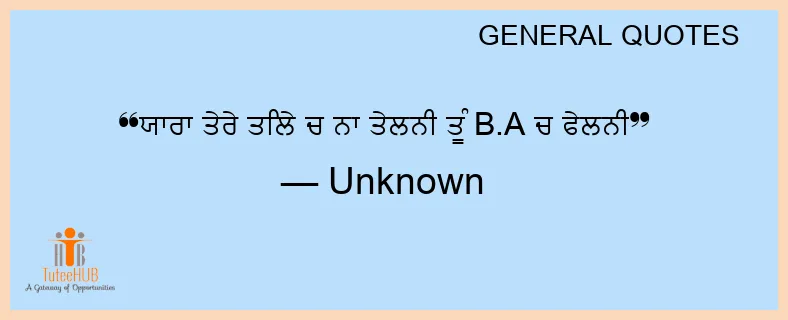 ਯਾਰਾ ਤੇਰੇ ਤਿਲੇ ਚ ਨਾ ਤੇਲਨੀ ਤੂੰ B.A ਚ ਫੇਲਨੀ