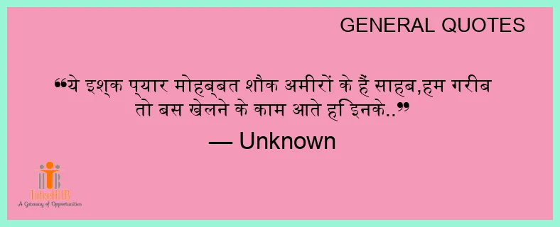 ये इश्क प्यार मोहब्बत शौक अमीरों के हैं साहब,हम गरीब तो बस खेलने के काम आते हिं इनके..