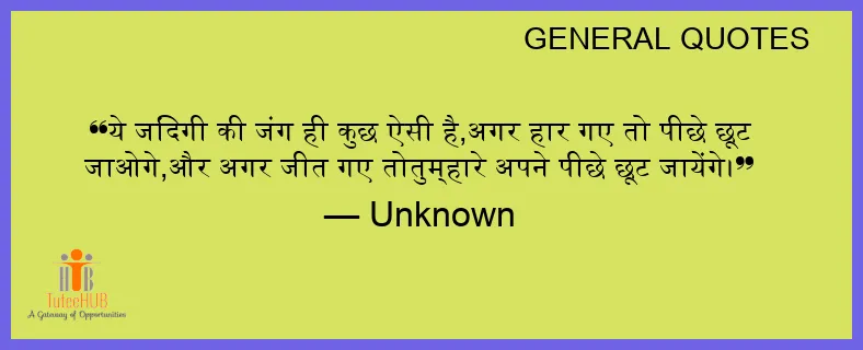 ये जिंदगी की जंग ही कुछ ऐसी है,अगर हार गए तो पीछे छूट जाओगे,और अगर जीत गए तोतुम्हारे अपने पीछे छूट जायेंगे।