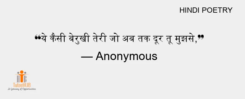 ये कैसी बेरुखी तेरी जो अब तक दूर तू मुझसे,