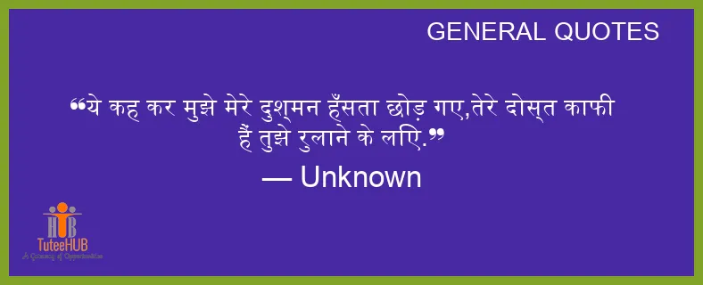 ये कह कर मुझे मेरे दुश्मन हँसता छोड़ गए,तेरे दोस्त काफी हैं तुझे रुलाने के लिए.