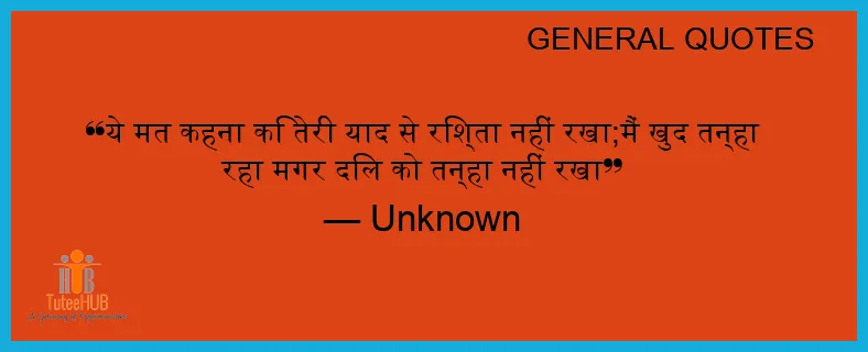 ये मत कहना कि तेरी याद से रिश्ता नहीं रखा;मैं खुद तन्हा रहा मगर दिल को तन्हा नहीं रखा