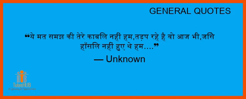 ये मत समझ की तेरे काबिल नहीं हम,तड़प रहे है वो आज भी,जिसे हाँसिल नहीं हुए थे हम….