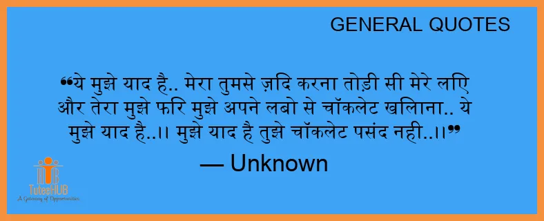 ये मुझे याद है.. मेरा तुमसे ज़िद करना तोड़ी सी मेरे लिए और तेरा मुझे फिर मुझे अपने लबो से चॉकलेट खिलाना.. ये मुझे याद है..।। मुझे याद है तुझे चॉकलेट पसंद नही..।।