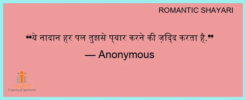 ये नादान हर पल तुझसे प्यार करने की ज़िद्द करता है.
