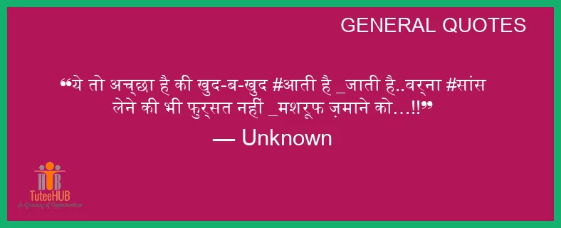ये तो अच्छा है की खुद-ब-खुद #आती है _जाती है..वर्ना #सांस लेने की भी फुर्सत नहीं _मशरूफ ज़माने को…!!