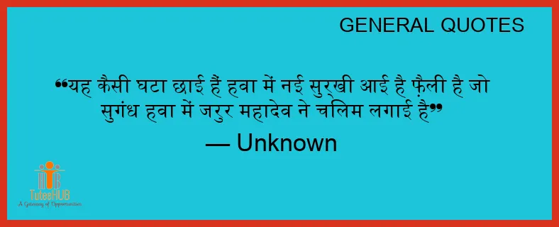 यह कैसी घटा छाई हैं हवा में नई सुर्खी आई है फ़ैली है जो सुगंध हवा में जरुर महादेव ने चिलम लगाई है