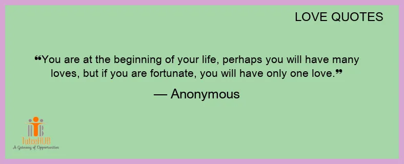 You are at the beginning of your life, perhaps you will have many loves, but if you are fortunate, you will have only one love.