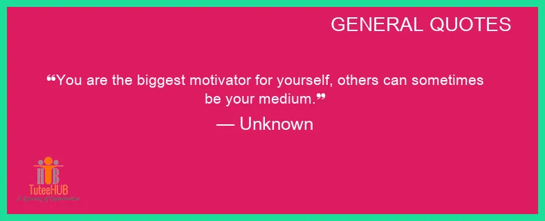 You are the BIGGEST MOTIVATOR for yourself, OTHERS can SOMETIMES be your MEDIUM.