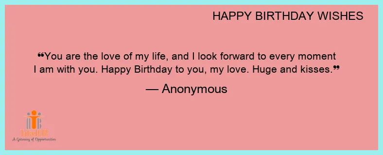 You are the love of my life, and I look forward to every moment I am with you. Happy Birthday to you, my love. Huge and kisses.