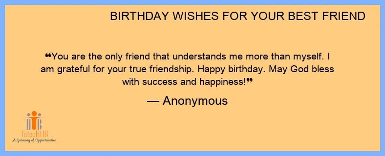 You are the only friend that understands me more than myself. I am grateful for your true friendship. Happy birthday. May God bless with success and happiness!