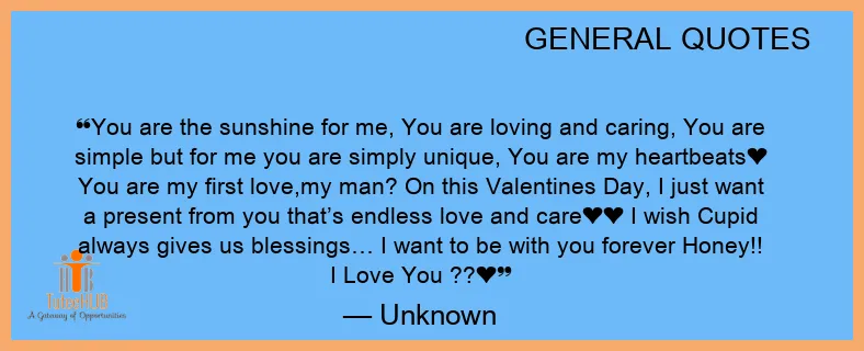 You are the sunshine for me, You are loving and CARING, You are SIMPLE but for me you are simply unique, You are my heartbeats❤ You are my first love,my man? On this Valentines Day, I just WANT a PRESENT from you that’s endless love and care❤❤ I wish Cupid always gives US blessings… I want to be with you forever Honey!! I Love You ??❤