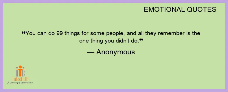You can do 99 things for some people, and all they remember is the one thing you didn’t do.