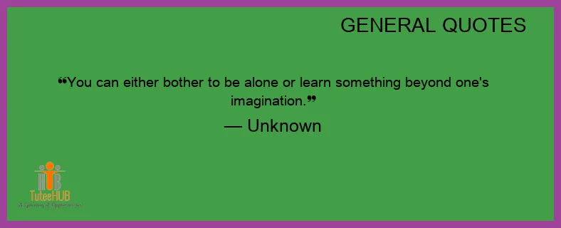 You can either BOTHER to be ALONE or learn SOMETHING BEYOND one's imagination.