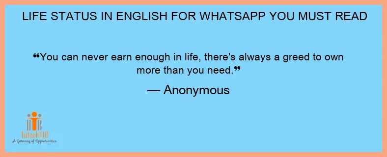 You can never earn enough in life, there's always a greed to own more than you need.