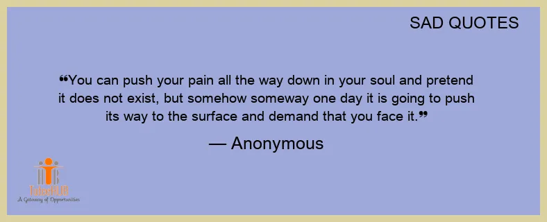 You can push your pain all the way down in your soul and pretend it does not exist, but somehow someway one day it is going to push its way to the surface and demand that you face it.