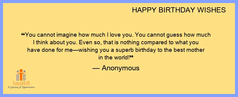 You cannot imagine how much I love you. You cannot guess how much I think about you. Even so, that is nothing compared to what you have done for me—wishing you a superb birthday to the best mother in the world!
