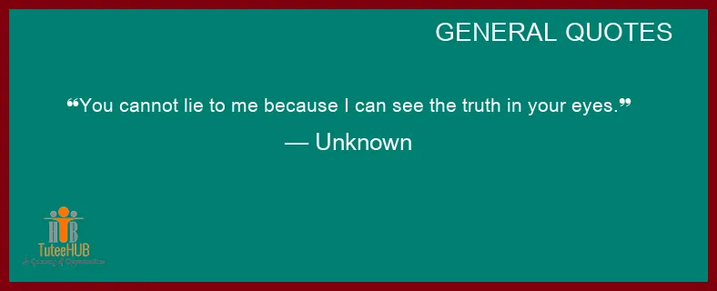 You cannot LIE to me because I can SEE the TRUTH in your EYES.