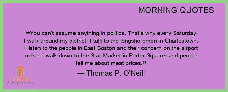 You can't ASSUME ANYTHING in POLITICS. That's why every Saturday I walk around my district. I talk to the longshoremen in Charlestown. I LISTEN to the people in EAST Boston and their concern on the airport noise. I walk down to the Star Market in Porter Square, and people tell me about meat prices.